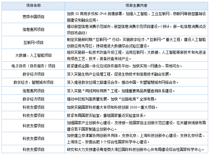 2019年国家将重点推进14类支撑"数字中国"建设的项目,项目名称及主要内容如下: