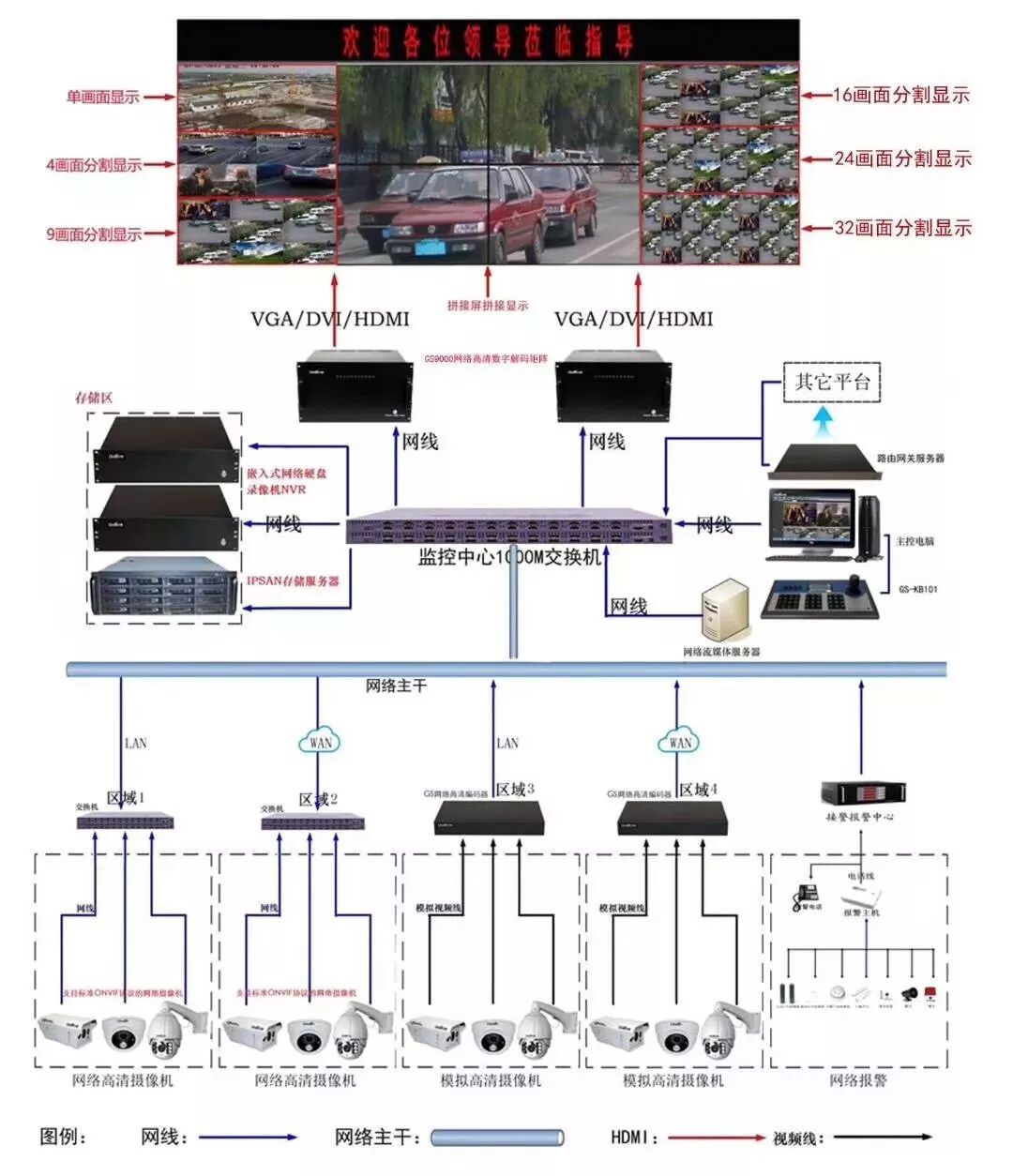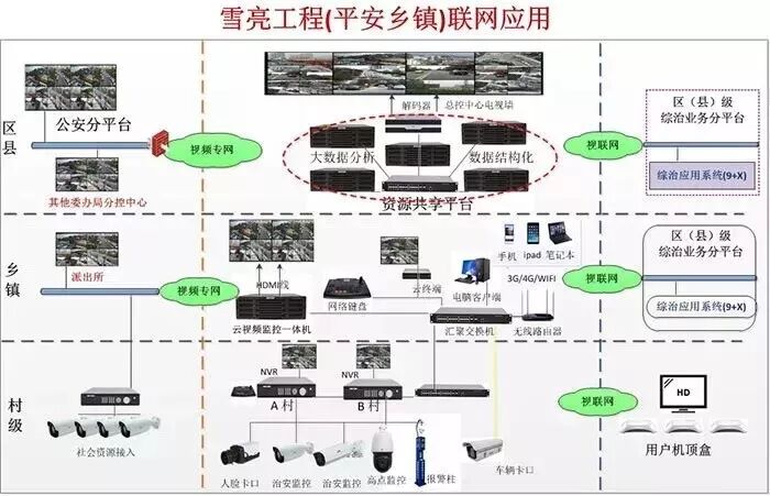 此图为雪亮工程拓扑图,目前发展非常迅速,有条件的可以多往这方面发展