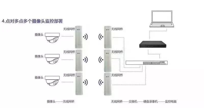 上面两个图为无线监控(无线网桥)系统拓扑图