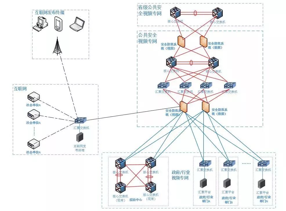 核心之四:实现公共安全视频专网、政府/行业视频专网、互联网的视频资源联网三类网络资源汇聚和共享发布。